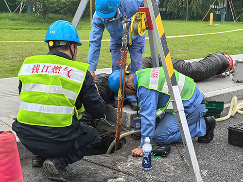 10點54分,路人報13號大街與22號大街交叉口附近聞到很濃的煤氣味,錢江公司接警后迅速出動,于11:07抵達現場,快速查漏并鎖定泄漏閥門井,同步開展警戒隔離、人員疏散和非機動車引導工作。搶修人員在做好現場安全和防護措施后下井細致查漏,精準鎖定泄漏點;現場指揮部快速準確制定搶修處置方案,明確需關閉閥門和人員分工,并聯系外部支援力量確保搶修迅速有力;其他人員及時做好信息溝通和后勤保障工作。在經過系列緊張有序、協同有效的應急處置后,修復完成、測漏合格并恢復供氣,12:23應急拉練圓滿結束。