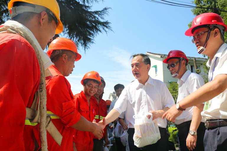 7月30日,市公司總經(jīng)理章維明一行,在集團(tuán)公司總經(jīng)理俞建國(guó)、副總經(jīng)理王東的陪同下,看望慰問奮戰(zhàn)在杭鋼半山區(qū)域天然氣轉(zhuǎn)換現(xiàn)場(chǎng)的一線員工。