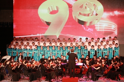 ,在 “城投之夜•市城投集團慶祝中國共產黨成立90周年交響合唱音樂晚會”上,“杭燃”合唱團受到大會表彰,榮獲銀獎。(圖為“杭燃”合唱團在晚會上的匯報演出)