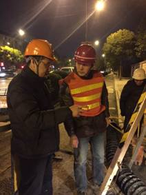 11月26日,一場突如其來的冷空氣使杭城的氣溫驟然下降到了0℃左右,在中河路(慶春路—鳳起路)路段的施工現(xiàn)場,施工員冒著刺骨的寒風(fēng),不分晝夜毅然堅守在一線崗位上。當(dāng)晚,集團(tuán)公司總經(jīng)理王東、工會主席王進(jìn)忠來到提壓改造中河路工地現(xiàn)場,親自將慰問品送給我們的員工,將公司對奮戰(zhàn)一線員工的關(guān)懷傳遞到了施工現(xiàn)場。