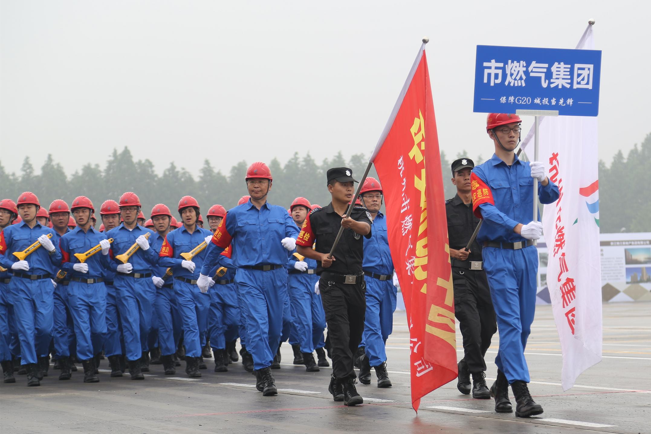 5月27日,G20峰會倒計時100天,在杭州上下全力沖刺峰會保障100天之際,市燃氣集團組織41名演習、80名隊列人員及5輛應急搶險車輛方陣參加了杭州市城投集團國際峰會保障百日誓師暨平安巡防支隊成立大會。