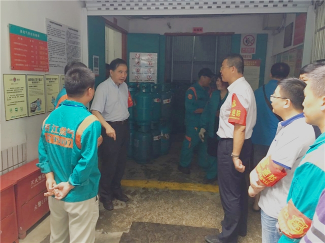 檢查中,章維明總經理對杭州百江落實瓶裝液化氣實名制銷售、供應站反恐安保措施、員工對G20峰會的認識、對消防器材使用掌握、對出站鋼瓶的檢漏等情況進行了現場詢問和查看。檢查過程中,章總對供應站在安防上采取安裝電動卷簾門、周界報警系統、增加安保、電瓶充電配置智能電瓶充電站等措施表示肯定,并對杭州百江進一步加強站點安全保障和用戶的供應服務保障提出要求:一是要認清形勢,全力抓好安保反恐工作,供應站要加強安保管理,未配備保安的站點抓緊將保安配置到位。二是加強供應站平安巡防工作,明晰保安工作職責。三是必須堅持鋼瓶實名制100%的硬杠杠,未實名登記的堅決不銷售。四是加強峰會保障宣傳教育,進一步提升員工對峰會保障的責任認知。五是確保供應,做好服務。若供應站峰會期間要關停,要通報行業主管部門、提前告知用戶。六是樹立百江品牌,做好對外宣傳工作。