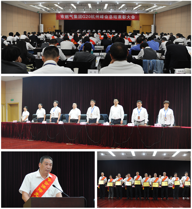 會上,集團公司黨委副書記、總經理王東從G20峰會保障任務、G20峰會保障成效、G20峰會保障經驗等三個方面,全面總結了燃氣峰會服務保障工作;黨委副書記、監事會主席湯偉通報省、市、城投先進名單及集團峰會表彰文件,大會給集團公司先進集體、先進個人頒獎。本次G20杭州峰會保障中,集團公司共有23家單位、103人次獲得全國、省市、城投以及集團各類榮譽。