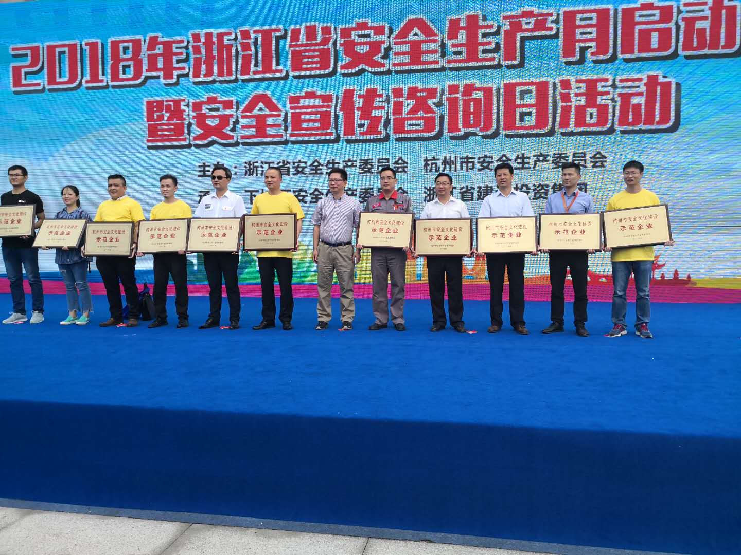 6月1日上午,浙江省2018年安全生產(chǎn)月啟動(dòng)儀式暨安全巡查咨詢(xún)?nèi)栈顒?dòng)在武林廣場(chǎng)拉開(kāi)序幕。期間,杭州市安監(jiān)局副局長(zhǎng)沈根林為杭燃集團(tuán)頒發(fā)了“2017年度杭州市安全文化示范企業(yè)”榮譽(yù)牌。這是集團(tuán)公司致力安全發(fā)展、文化建設(shè)獲得的又一成果。