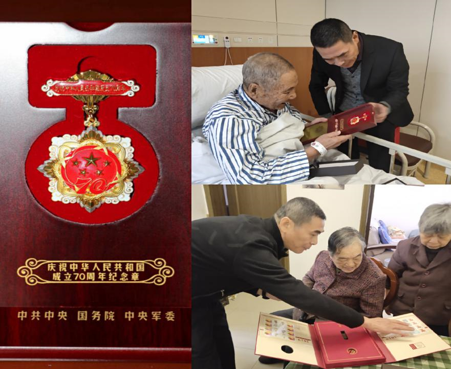 今年是新中國成立70周年,中共中央、國務院、中央軍委頒發“慶祝中華人民共和國成立70周年”紀念章,旨在表彰中華人民共和國成立前參加革命工作和健在的老戰士老同志。根據市國資委、市城投集團相關工作要求,近日,集團公司黨委副書記、監事會主席、工會主席金富根帶著各級領導的囑托和沉甸甸的勛章,來到袁振武和童素娥兩位老干部家中進行探望。
