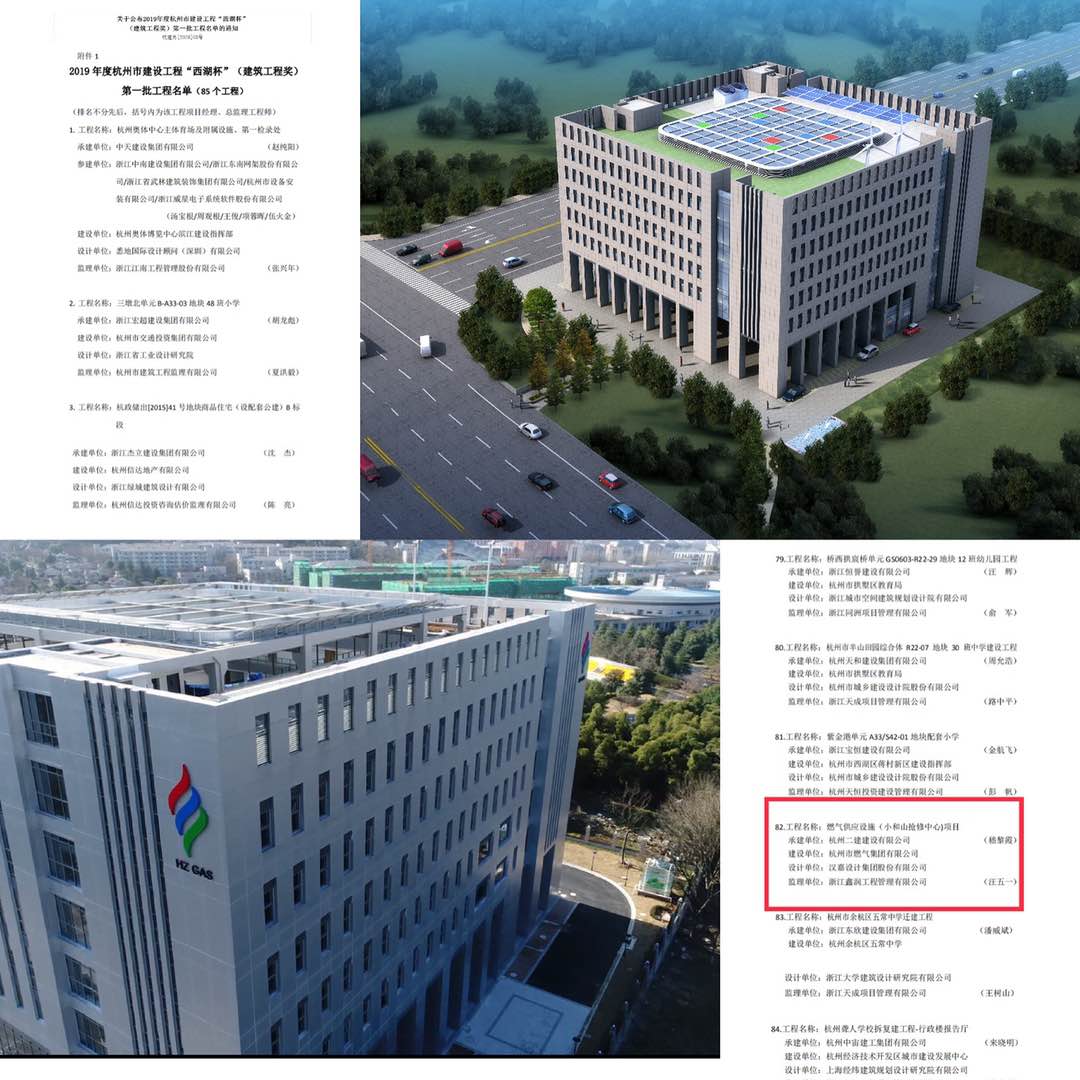 近日,杭州市燃氣集團有限公司綠色能源體驗中心(工程燃氣供應設施(小和山搶修中心)項目,經過申報、初審、評議、表決、公示等多項程序嚴格審核,最終榮獲2019年度杭州市建設工程最高獎項“西湖杯(建筑工程獎)”。