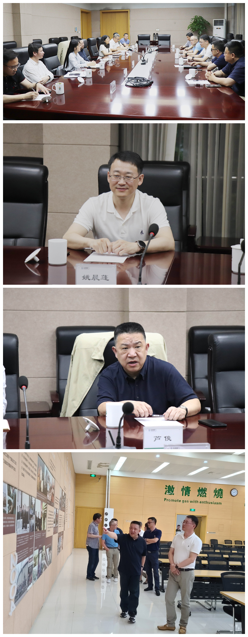 杭燃集團黨委書記、董事長蘆俊對姚晨蓬董事長一行的到訪表示歡迎,并對杭州錢塘新區產業發展集團有限公司多年來對杭燃集團及錢江公司、大江東能源公司的支持與信任表示感謝。同時,雙方就深化合作,推動錢塘新區天然氣可持續健康發展進行交流。姚晨蓬董事長一行還參觀了杭燃發展歷史文化墻。