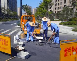7點40分,班長魏國吉接到巡檢上報的同協路主干道閥門被市政部門鋪設瀝青填埋。如不及時挖出抬升,可能影響管道的巡檢查漏、應急處置,存在安全隱患。于是他立即打好圖紙,帶上儀器與工具,帶領著班組人員出發。雖然還是早上8點,但已經明顯感覺到氣溫的來勢洶洶,不過維護工作井然有序地開展著,探管、定位、挖出、抬升……就在大家揮汗奮戰時,9點55分,又接到公司總調轉來110來電:慶春東路燃氣井蓋翻起,已不能正常閉合。絕對不能拖延。他們把被埋的閥門井順利抬升到路面高度之后,維護人員顧不得休息,又馬不停蹄地趕往慶春東路更換燃氣井蓋。中午12點50分,當維護人員回到單位時,食堂早已沒有午飯,只能去附近的快餐店解決。