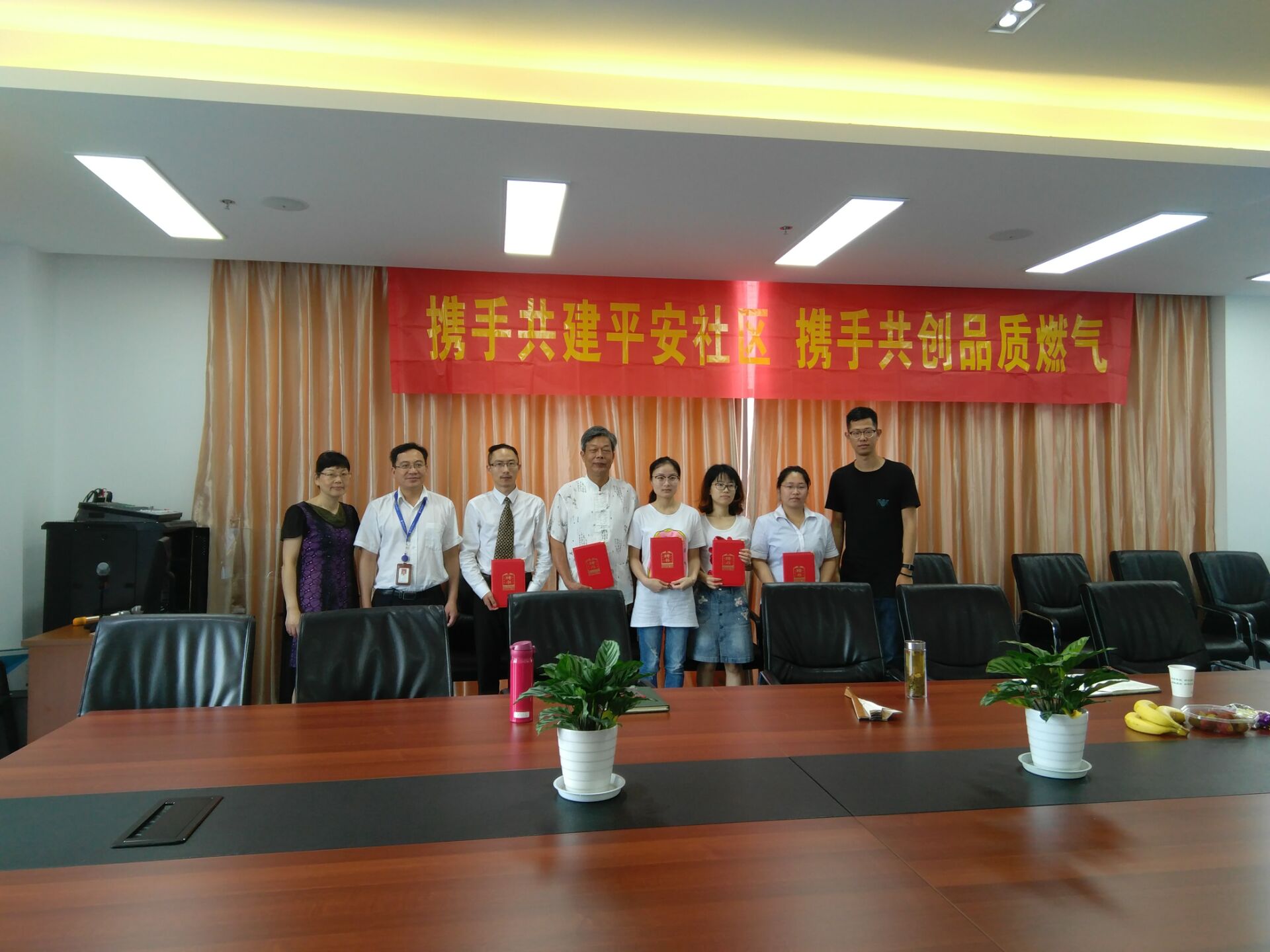 杭天公司現場頒發了“攜手共建平安社區,攜手共創品質燃氣”牌匾和安全監督員聘書,并表示:一是希望協助公司提高入戶安檢率,提供小區空關戶聯系方式;二是希望發揮機構作用,協助公司推進燃氣隱患整改;三是希望協同強化用氣安全宣傳,共創“平安社區”;四是希望共同提高燃氣泄漏燃爆等突發事件應急處置能力,將風險和損失降至最小;五是希望及時關注高層用戶違規使用煤氣鋼瓶等情況并督促整改,推薦住戶使用天然氣。 同時,將為社區居民提供如更換金屬管免上門費,推廣19服務廳讓用戶足不出戶辦業務等更優質、更實惠的便民服務,期待共建后進一步交流協作。