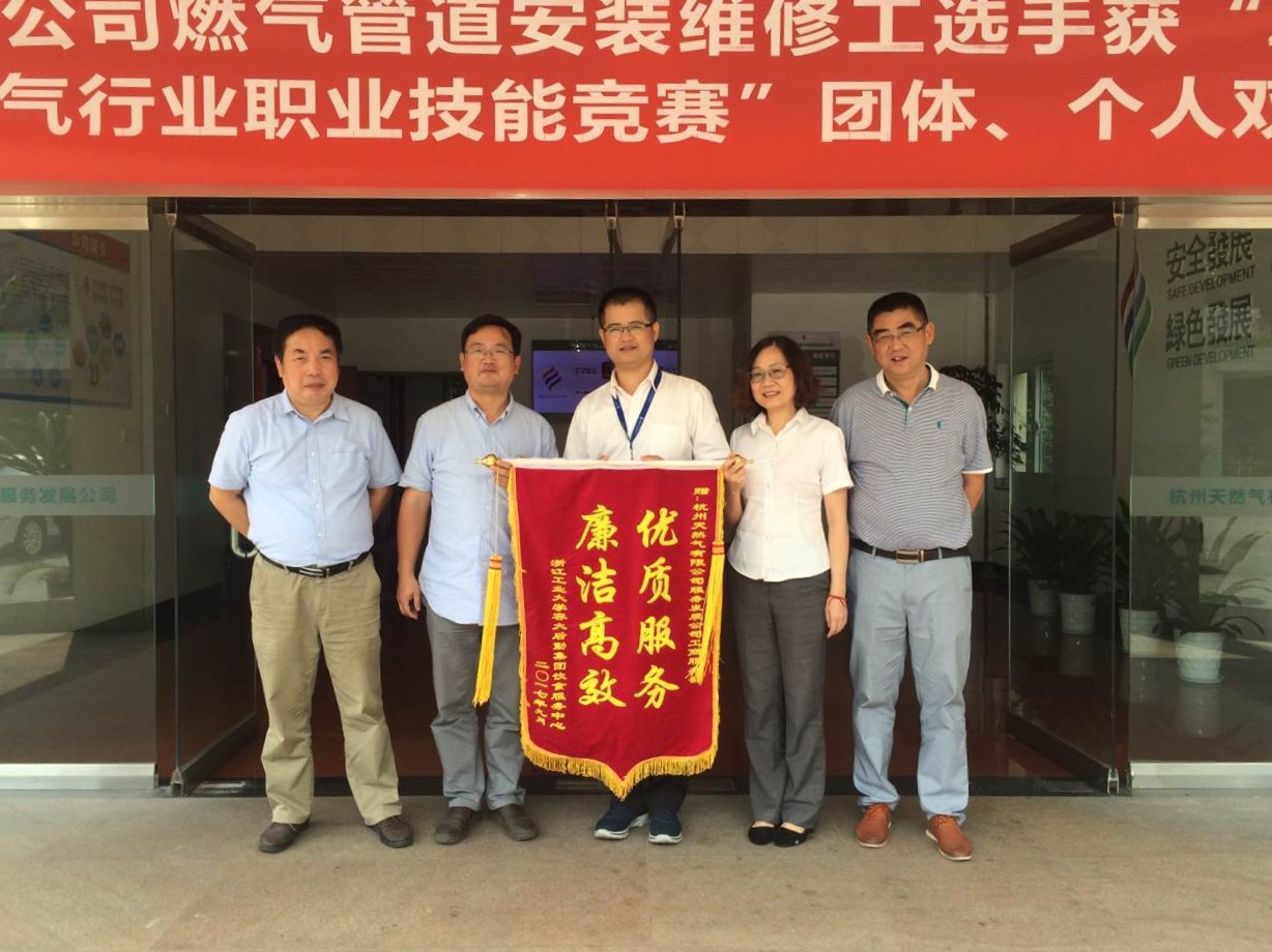 9月13日,浙江工業(yè)大學(xué)容大后勤集團(tuán)馮主任專(zhuān)程將寫(xiě)有“優(yōu)質(zhì)服務(wù),廉潔高效”的錦旗送到杭天服務(wù)發(fā)展公司。馮主任衷心地感謝公司對(duì)浙工大兩個(gè)校區(qū)廚房改造工程的支持和幫助,贊揚(yáng)拆改工程的高效有序。