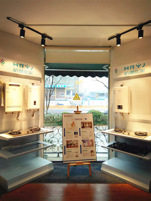 設(shè)置展臺(tái),宣傳“優(yōu)家”品牌。9月20日,“杭燃優(yōu)家”正式對(duì)外銷售。公司立即響應(yīng)集團(tuán)公司號(hào)召,對(duì)江虹路營(yíng)業(yè)廳這只“小麻雀”,又進(jìn)行了一番改造。去除大廳左側(cè)整體玻璃,將結(jié)構(gòu)稍作變更,鋪地毯、立墻面、擺展臺(tái),掛射燈……“杭燃優(yōu)家”熱水器、灶具、鍋爐等產(chǎn)品以溫暖的“形象”紛紛展現(xiàn)在客戶眼前。展臺(tái)室外的鐵質(zhì)欄桿更是具有藝術(shù)氣息,外立面的白色木質(zhì)墻面與優(yōu)家的宣傳圖貼切融合。展位雖小,卻獨(dú)具一格。