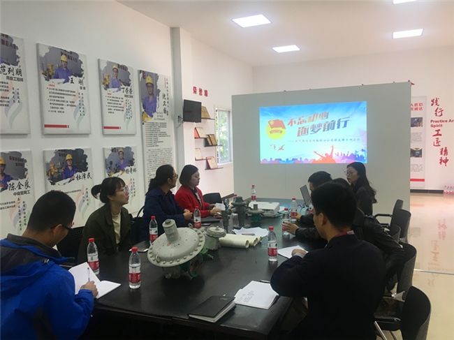 調研組一行在分公司團支部副書記鐘奇的引導下,參觀了杭天七堡基地的燃氣三聯供系統、青年職工之家和調壓大師工作室,認真聽取了分公司團支部書記陶婧從組織建設、重點工作、成績榮譽、計劃展望四個方面作的基層團組織工作匯報。