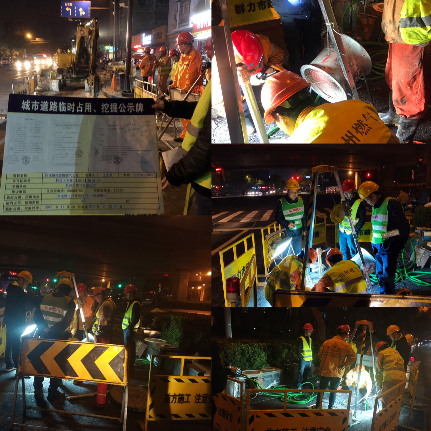 工程施工在城區(qū)老道路上,交通流量大、地下管網(wǎng)多,施工員、工程前期人員在多次實地踏勘的基礎(chǔ)上,及時與市政、交警部門及相鄰管線單位溝通,完成相關(guān)前期審批。11月8日,正式進(jìn)場施工后,在不影響交通及減少影響周邊居民休息的情況下,合理安排施工機(jī)械,全部夜間施工;由于北景園月桂苑西門為該小區(qū)唯一車輛進(jìn)出大門,分公司根據(jù)現(xiàn)場情況不斷優(yōu)化施工方案,保證施工期間小區(qū)車輛的正常通行,為保證冬季用氣高峰前完成該工程,連日下雨不停工,11月13日完成所有地下管道的鋪設(shè);15日夜間開始新老管線割接,至次日凌晨四點半完成。該區(qū)塊地下中壓管網(wǎng)環(huán)通后,將惠及杭玻街(石橋路~沈半路)兩側(cè)用戶、東新路(石橋路~北景春天)兩側(cè)用戶等8000多戶居民。