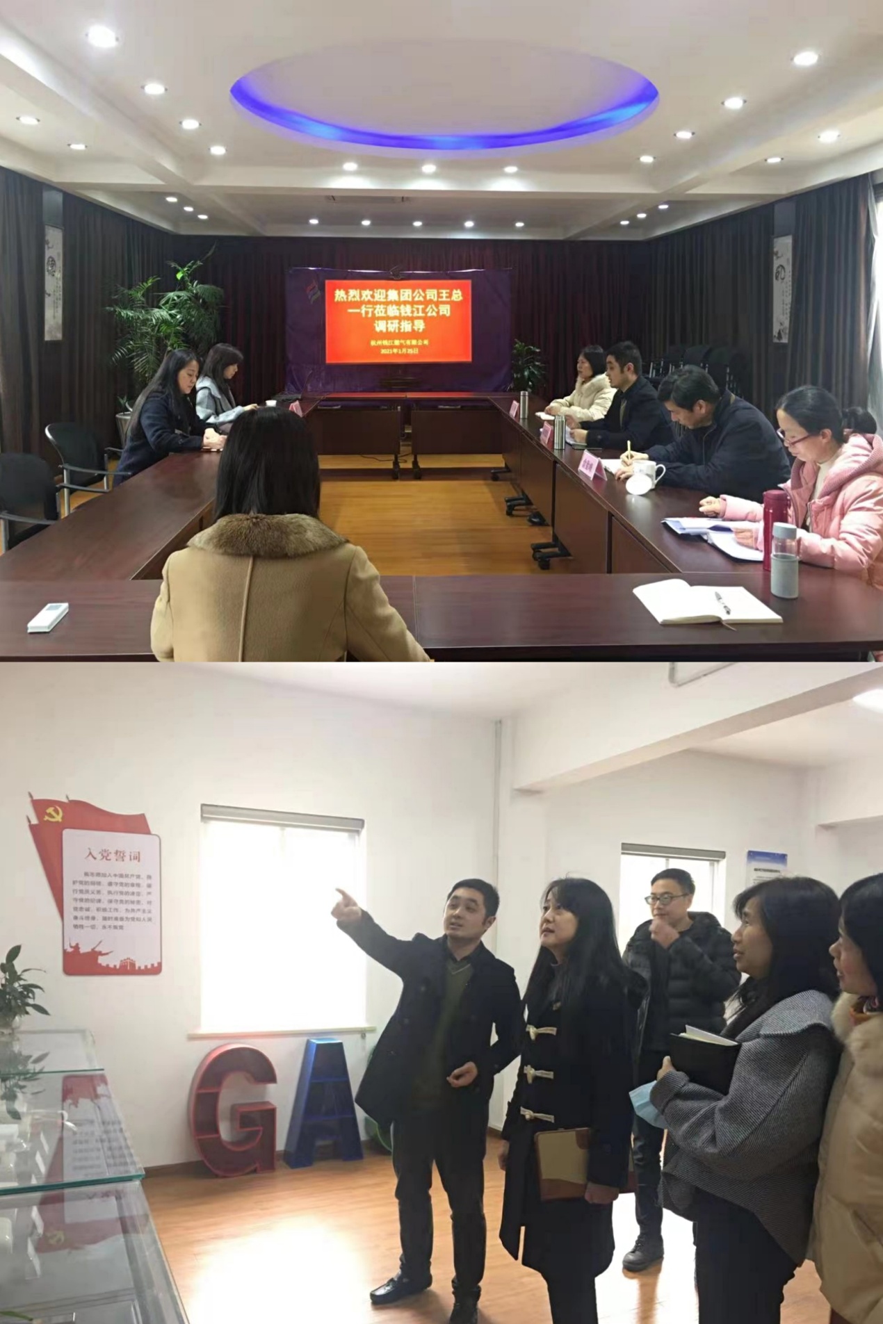 王總一行首先參觀了錢江公司多功能廳、員工之家、客戶服務(wù)中心、殷一珍燃?xì)夤⿷?yīng)技能工作室,對(duì)公司整潔有序的廠區(qū)環(huán)境給與充分認(rèn)可。隨后在調(diào)研會(huì)上,公司總經(jīng)理蘇忠杰就錢江公司和星港公司的基本情況、企業(yè)發(fā)展、營(yíng)商環(huán)境以及2020年度公司的主要工作完成情況作了簡(jiǎn)要的匯報(bào)。