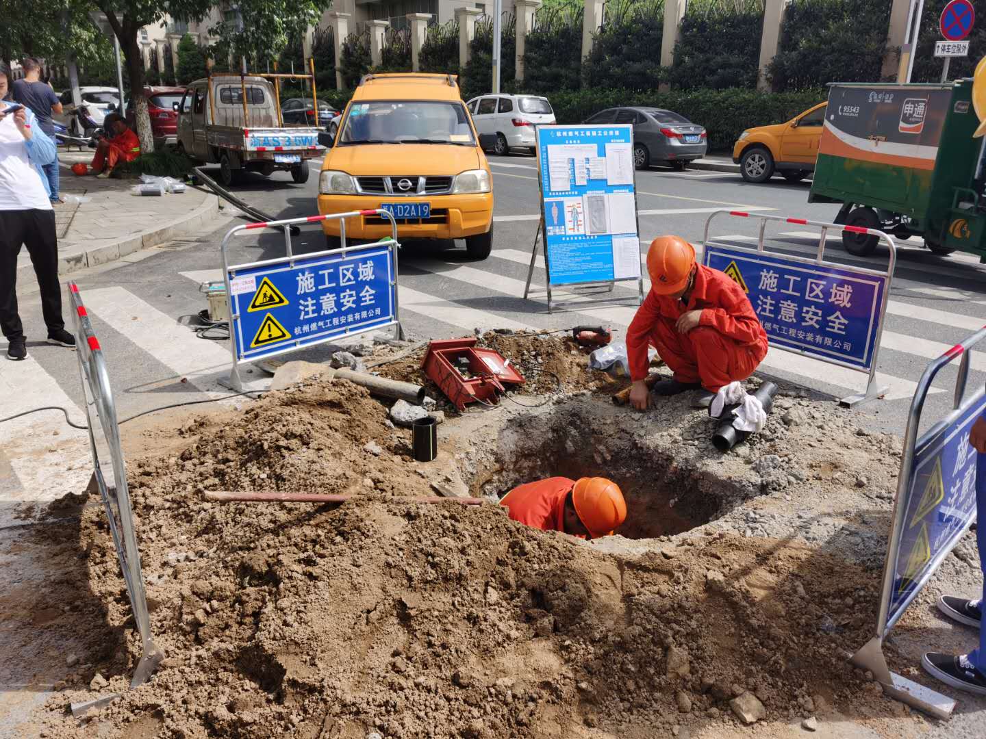 為實現原中杭路與迎春南路管線成環供氣,改善中杭路商務區域路段單一供氣局面,同時為不影響用戶用氣,把控每個施工環節,做足前期道路、人行道板開挖審批等工作,確認碰接點與施工點,對閥門啟閉性能進行了檢查。