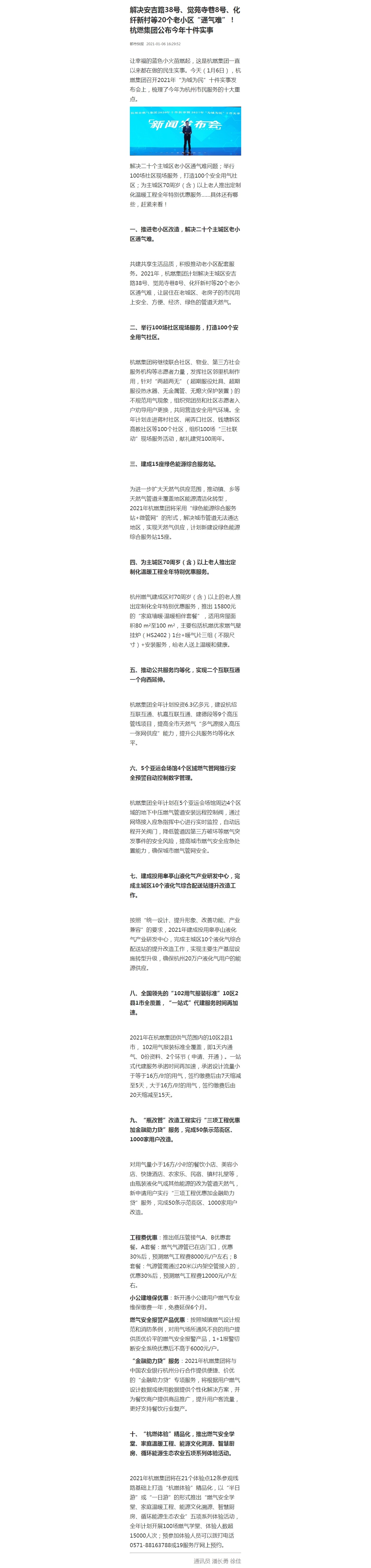 讓幸福的藍色小火苗燃起,這是杭燃集團一直以來都在做的民生實事。今天(1月6日),杭燃集團召開2021年“為城為民”十件實事發布會上,梳理了今年為杭州市民服務的十大重點。