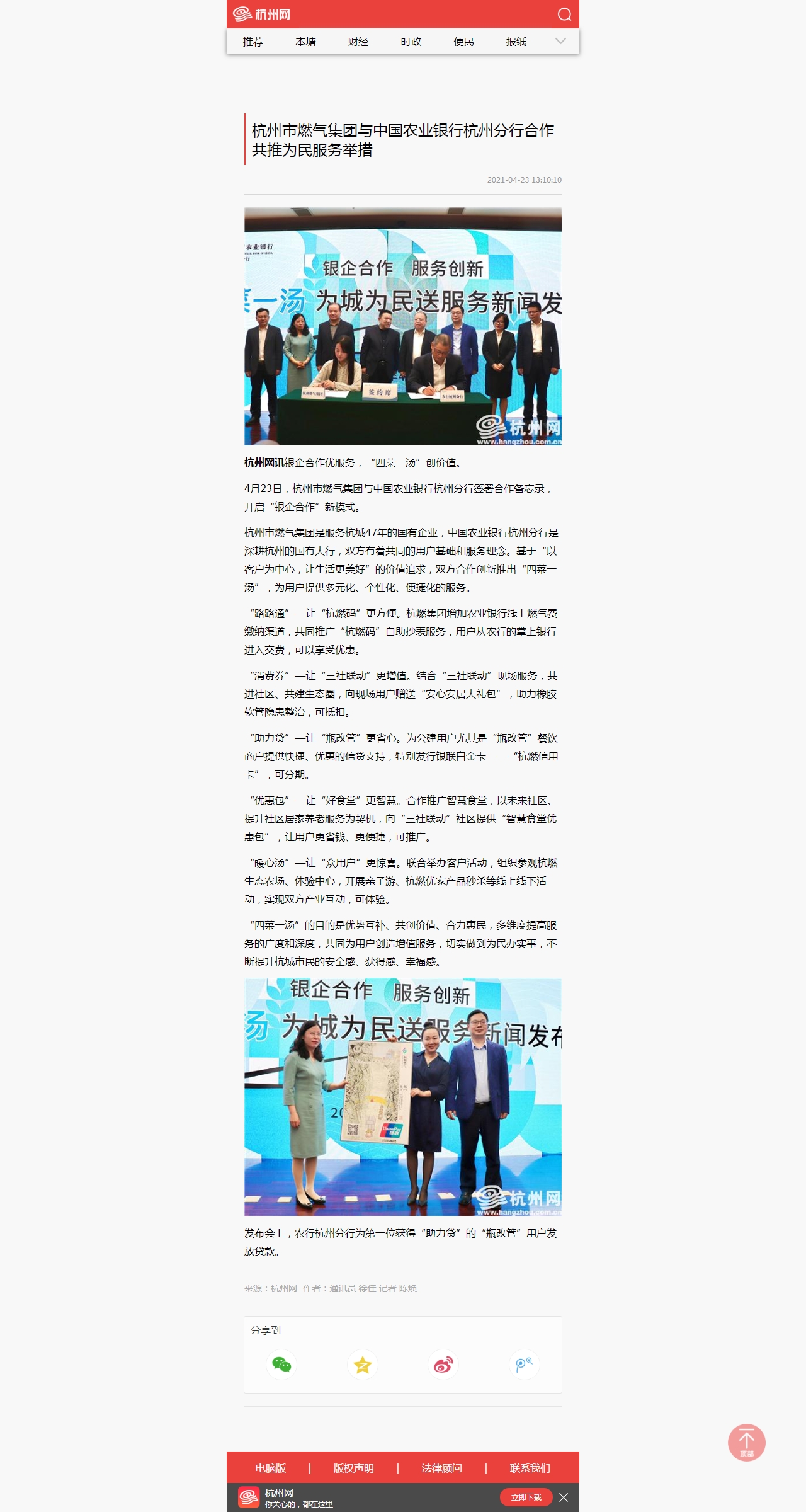 4月23日,杭州市燃?xì)饧瘓F(tuán)與中國(guó)農(nóng)業(yè)銀行杭州分行簽署合作備忘錄,開(kāi)啟“銀企合作”新模式。