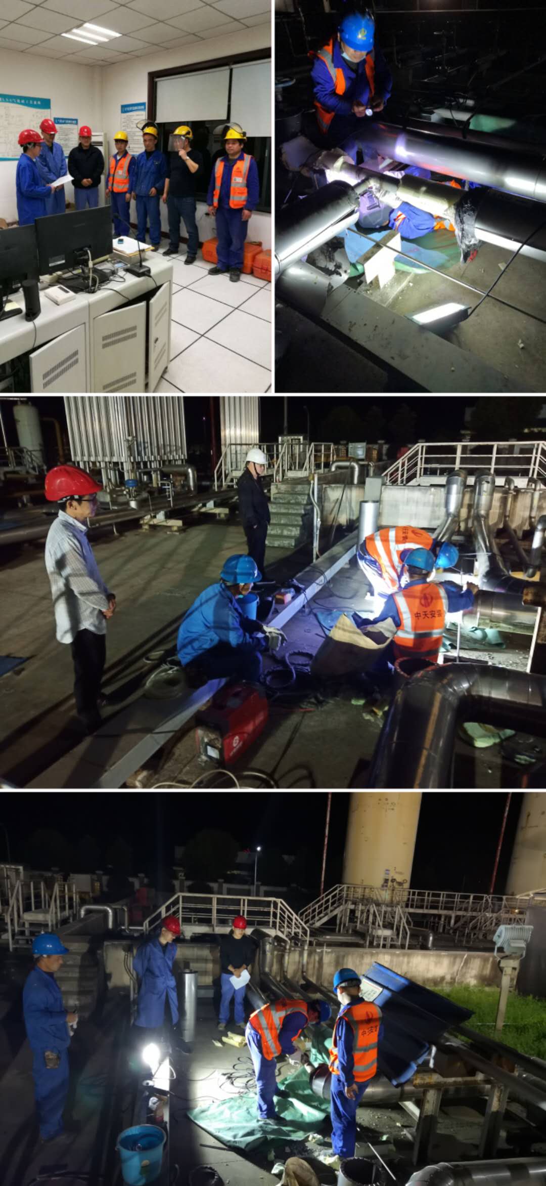 25日19時30分,修復作業準時開始,公司總經理方國華和原施工單位項目負責人親臨現場指揮。公司與施工單位嚴格按照作業方案,在確定各項安全措施到位后,有序進行放散、吹掃、割接和置換等一系列工作。經輸配運行人員和施工作業人員不畏辛苦,持續作戰六個多小時,最終于26日凌晨2點順利完成兩處液相管焊點修復,并經第三方擴探6處合格。隨后輸配運行人員切換為LNG供氣。