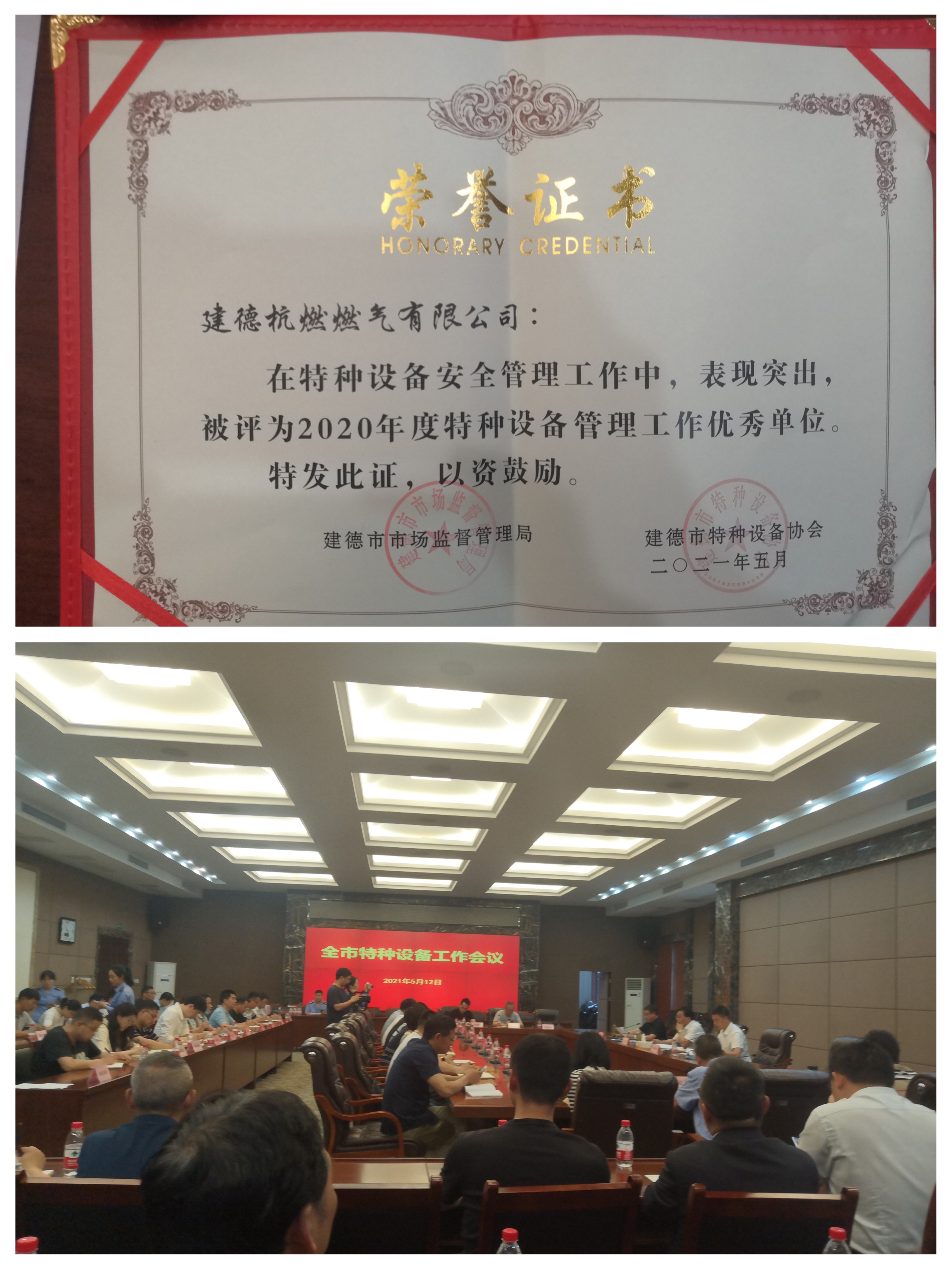 2021年5月12日,建德市人民政府辦公室組織召開《建德市特種設備安全工作會議》,會上對二〇二〇年特種設備管理工作優(yōu)秀單位進行表彰,建德公司被評為二〇二〇年度特種設備管理工作優(yōu)秀單位,這也是建德公司首次被評為特種設備管理工作優(yōu)秀單位。