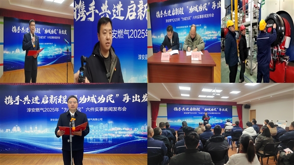 淳安公司支部書記、董事長丁立飛作新聞發布,宣布2025年“為城為民”六件實事。今年,淳安縣住房和城鄉建設局機關黨支部與淳安杭燃黨支部首次黨建聯建,攜手推出六件實事,圍繞“為城為民”服務宗旨,深化政企合作:聯合開展安全檢查和服務,推進膠管“清零”;改造老舊小區,消除安全隱患;持續落實非居民用戶同城同價,減輕用戶用氣成本;對小區低壓管網開展精細化“體檢”,運用科技手段保障老舊小區管網安全;完善文昌鎮、汾口鎮管網成環成網,推動鄉鎮燃氣服務均等化;創新推出小公建優惠套餐,釋放管道燃氣紅利。這些舉措助力淳安縣山海協作和共同富裕,讓群眾共享發展成果。