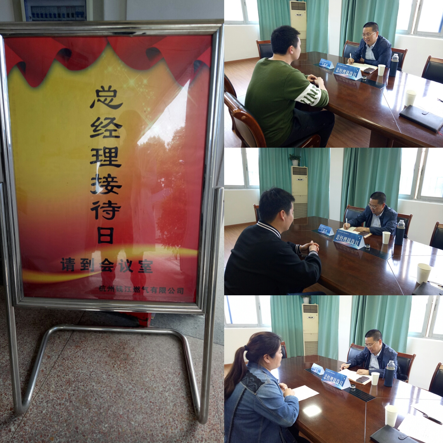 4月24日下午,集團2018年度第一期“總經理接待日”活動如期而至。集團副總經理、總工程師王忠平在錢江公司會議室接待了來自東部各單位的6名基層員工代表,認真聆聽了他們的心聲,為大家解疑釋惑。