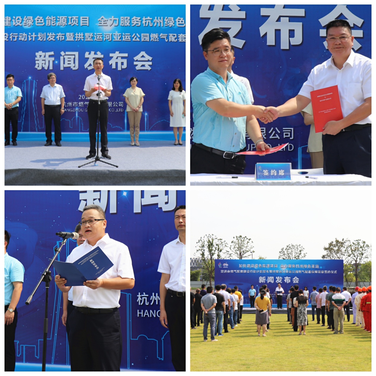 9月9日,是2022杭州亞運(yùn)會(huì)倒計(jì)時(shí)兩周年之際,集團(tuán)組織召開(kāi)“加快建設(shè)綠色能源項(xiàng)目 全力服務(wù)杭州綠色亞運(yùn)——亞運(yùn)會(huì)燃?xì)馀涮捉ㄔO(shè)行動(dòng)計(jì)劃發(fā)布暨拱墅運(yùn)河亞運(yùn)公園燃?xì)馀涮妆U享?xiàng)目簽約儀式”新聞發(fā)布會(huì)。杭州亞組委場(chǎng)館建設(shè)部副部長(zhǎng)陸春江、副處長(zhǎng)李沈飛、片組負(fù)責(zé)人胡黃蔚,市建委地空管線(xiàn)處副處長(zhǎng)陳莉鈞,市城投集團(tuán)工程建設(shè)部部長(zhǎng)金興平,拱墅運(yùn)河亞運(yùn)公園項(xiàng)目副總指揮韓國(guó)利,藍(lán)城杭亞文體發(fā)展有限公司總經(jīng)理劉宓,燃?xì)饧瘓F(tuán)黨委副書(shū)記、副總經(jīng)理朱琴君,副總經(jīng)理王忠平、俞峻,杭天公司副總經(jīng)理劉元清等領(lǐng)導(dǎo)嘉賓出席,11家省市媒體現(xiàn)場(chǎng)報(bào)道。