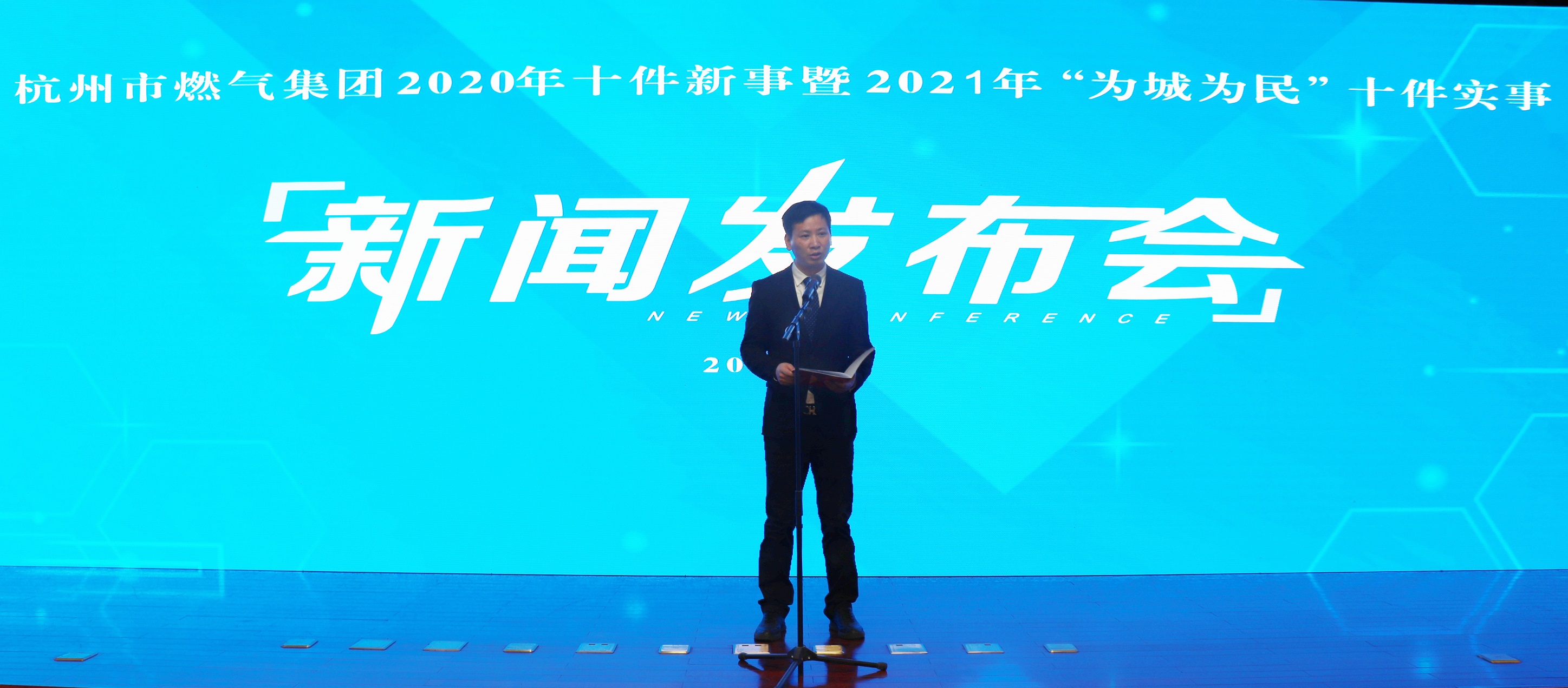 2021年1月6日上午,杭燃集團召開2020年十件新事暨2021年“為城為民”十件實事新聞發布會,連續第五年公開向社會發布為民辦十件實事。品質監督員代表應錫田、鄭凌、宮國勇、胡永祥、高國慶、王亞東、王魯民、范和平受邀參加發布會,集團領導班子成員、各部室負責人,以及各單位的黨政主要負責人等共計40余人參加。浙江衛視、浙江工人日報、杭州日報、錢江晚報、杭州電視臺、浙江交通之聲、浙江之聲、杭州網、《燃情浙江》雜志、《溫度管家》雜志等21家省、市媒體現場報道。集團副總經理俞峻主持發布會,副總經理徐小冬作新聞發布。