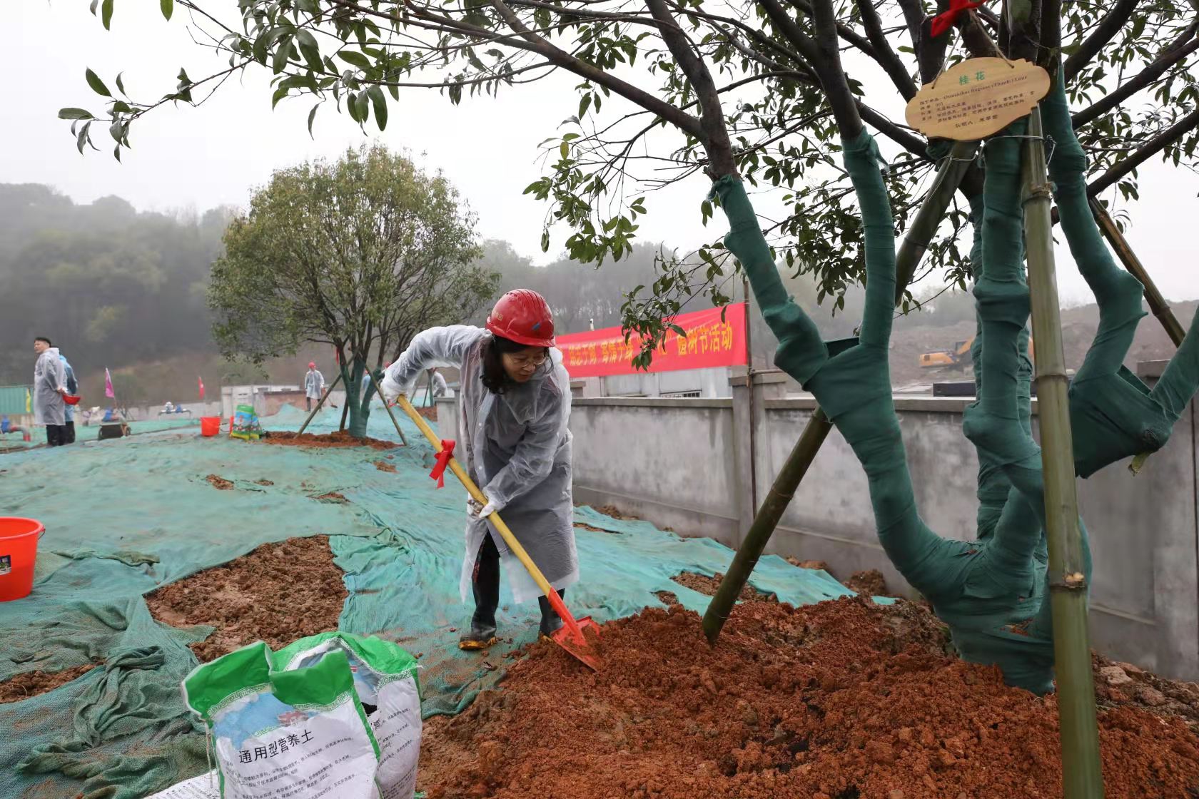 此次栽種的桂花樹,是1994年東郊灌裝廠興建之初就種下的,它們見證了液化氣時代的崛起與興盛,具有非凡的歷史價值和紀念意義。如今也伴隨著灌裝廠的遷址,遷移到了這片群山環繞、風景秀麗的新居,充分體現了集團對歷史文化的傳承和對生態資源的保護。在培綠區,領導們穿戴好勞作用品,揮動鐵楸,填土、澆灌、掛牌。一棵棵親自栽種的桂花樹承載著全體杭燃人對企業發展的美好祝愿。