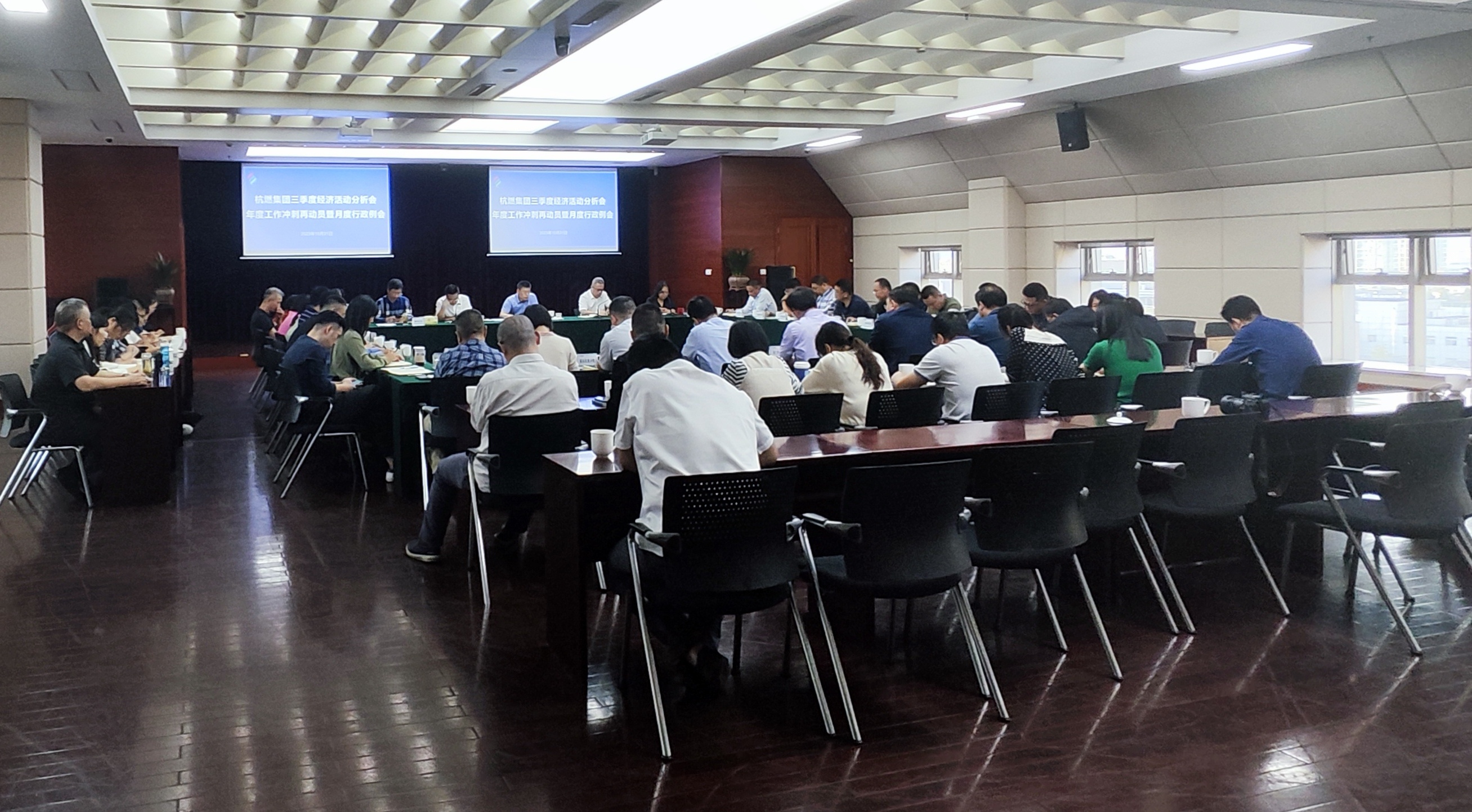 2023年10月31日下午,杭燃集團召開三季度經濟活動分析會、年度工作沖刺再動員暨月度行政例會。集團領導班子,各部室負責人,杭天公司經營班子、杭天各部室主要負責人、分公司黨政負責人,全資及控股企業、參股企業主要負責人近60人參加會議。會議由集團黨委委員、副總經理王忠平主持。