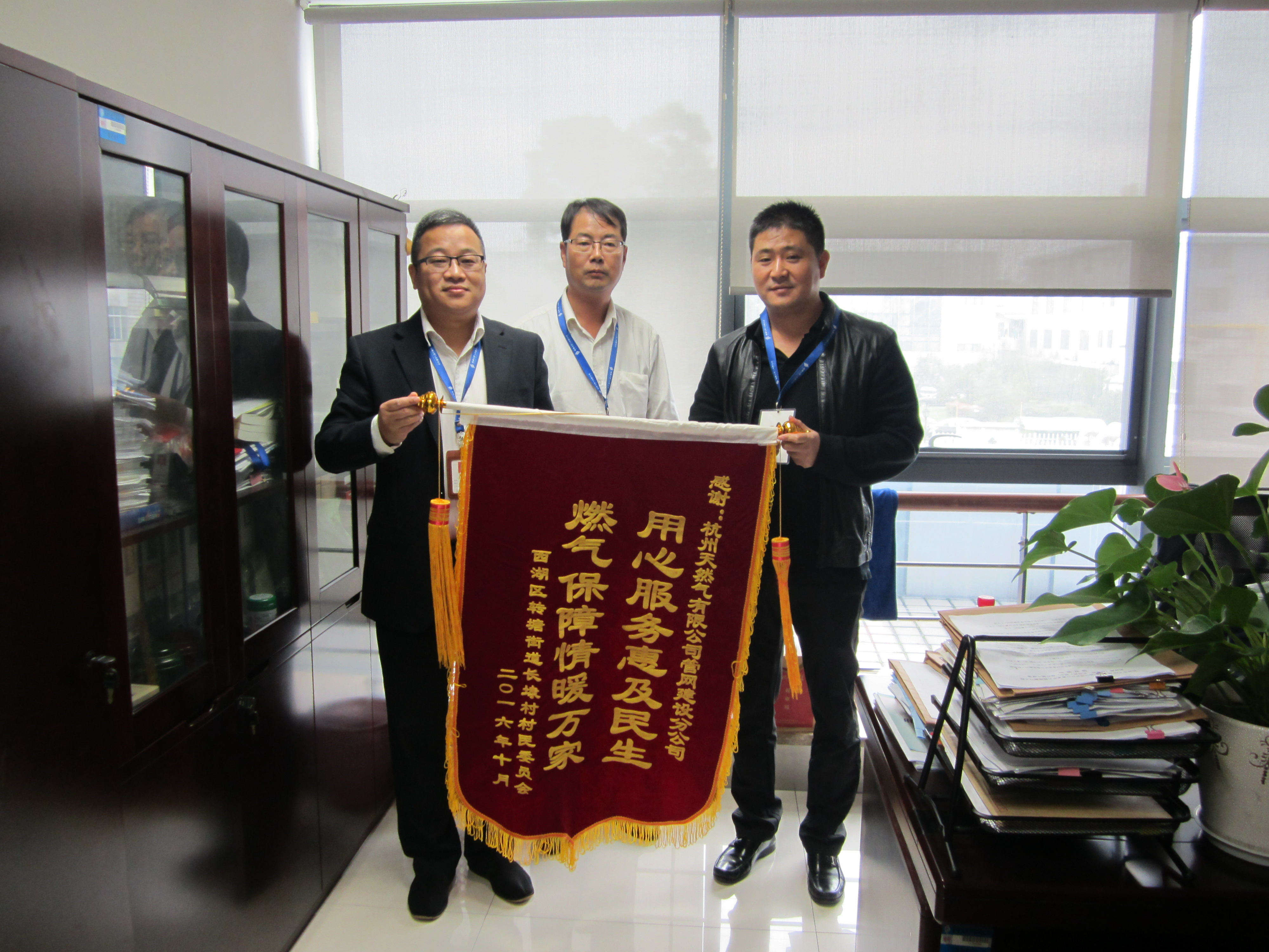 “這一年多來你們真的是太不容易了!我們代表長埭村全體村民向你們表示感謝!”11月1日上午,西湖區(qū)轉(zhuǎn)塘街道長埭村村民委員會負(fù)責(zé)人來到杭天公司,送來了一面繡有“用心服務(wù)惠及民生、燃?xì)獗U锨榕f家”的錦旗,由衷感謝龍塢茶鎮(zhèn)燃?xì)饨ㄔO(shè)工程給他們帶來的便利,對施工員認(rèn)真負(fù)責(zé)、高效便民的工作態(tài)度給予贊揚(yáng)。