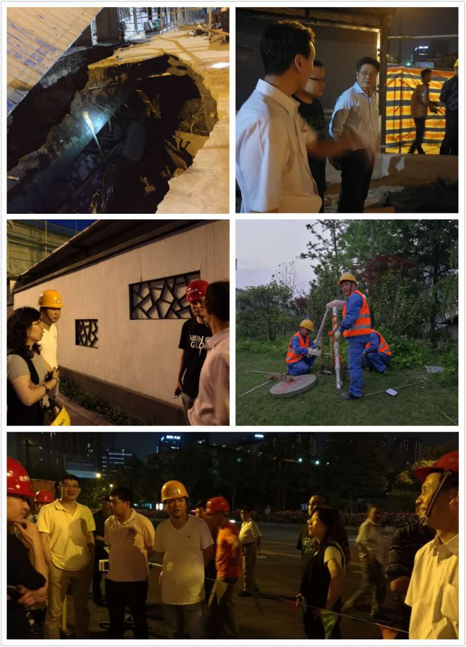 5月7日16時05分左右,杭天公司接到秋濤路解放路東北角杭州新闊實業投資有限公司報警:施工工地發生塌方,要求對現場燃氣管線進行檢查。公司立即指派搶修及巡檢人員趕赴現場。16:30左右,巡檢人員在解放東路秋濤路交界東北角工地發現,該處管線為中壓A、DN500鋼管,為錢江新城主供管道,工地塌方處正處燃氣管線上方,工地現場沉降嚴重,引起自來水管爆裂,導致一米左右距離的燃氣管線存在重大安全隱患。巡檢人員依照安全第一、速度第一的原則,第一時間報搶修中心,搶修人員接警后,火速趕往現場,同時巡檢人員做好現場監護,并用激光檢漏儀巡查沉降區域,經仔細檢查后未檢測出燃氣泄漏,公司相關負責人第一時間趕赴現場進行指揮工作,搶修人員到達現場后確認燃氣管線暫無泄露現象,且暫處平穩狀態,搶修撤回。18點左右,塌方處房子上的磚塊掉落,導致自來水管爆裂,水管搶修開挖點離燃氣管線僅1米,為確保不發生次生災害,現場負責人決定要求搶修人員回到現場待命。現場一面墻突然坍塌,在查看管位及附近用戶用氣情況下,搶修班果斷切斷塌陷區域管線,并放散降壓,確保萬無一失。隨后,巡檢人員現場多次檢測未發現燃氣泄漏。
