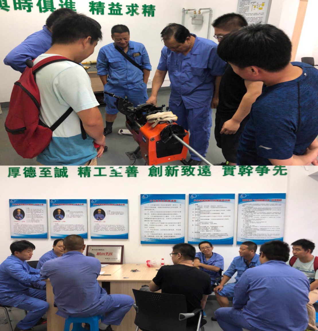為提高戶內安裝專業技能水平,促進戶內安裝工內部工作經驗交流,8月3日早上,位于北大橋的余號德戶內安裝技能工作室聚集了戶內安裝班、戶內搶修班和采暖業務部安裝班共8位戶內安裝技術人員,在浙江省建設工匠、杭州工匠、杭燃職業導師余號德的帶領下,開展了第一次安裝技能培訓。