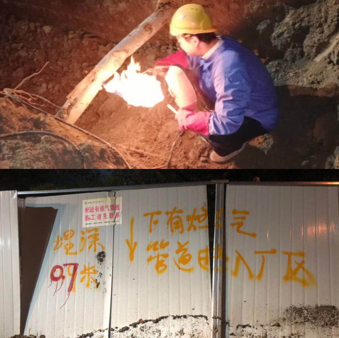 經了解,該處為電力施工工地,挖破燃氣管道的是廢土外運單位。就在挖破點旁邊1.5米的施工圍護上,“附近有燃氣管道”的提示以及埋深、位置的油漆標注清晰可見。事件發生后,杭天公司HSSE部第一時間將該處第三方破壞上報至杭州市城管委行政執法執法大隊,要求進行處理。