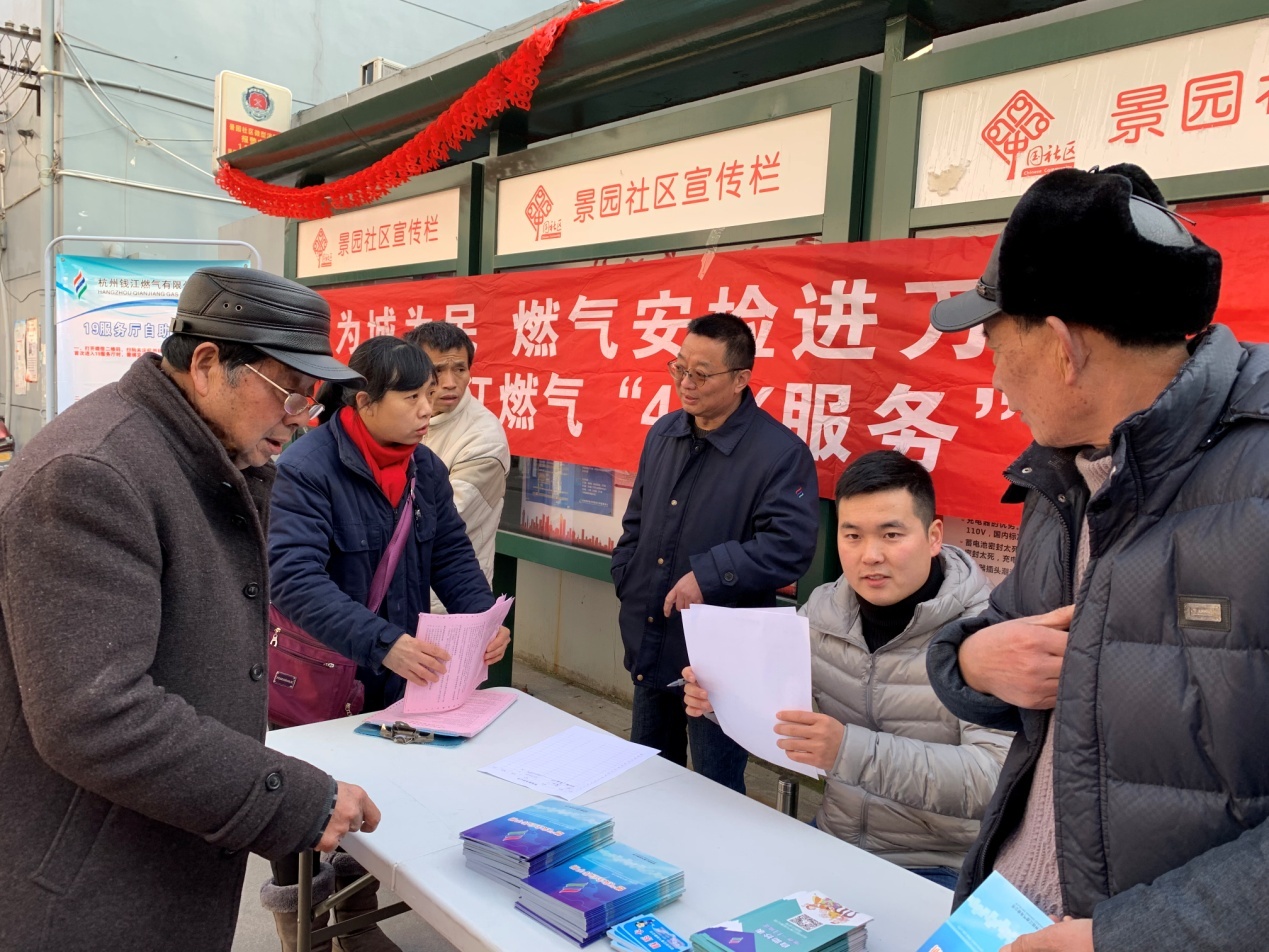 2019年1月23日,錢江燃氣黨團員志愿者在景園小區開展“4+X”現場服務,為小區居民帶來包括入戶安檢、隱患提醒、金屬軟管推廣、自助抄表等相關燃氣服務。