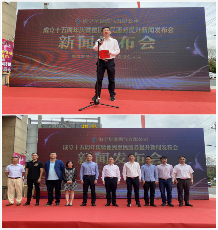 為感恩用戶15年來的支持,公司再次向廣大用戶推出五項便民惠民服務措施,公司副總經理蘇忠杰進行了新聞發布:一是民用戶“碼上辦”正式上線。二是對所有非居民用戶提供一次免費燃氣安全檢查。三是推出百臺灶具七折優惠購。四是推出百臺熱水器七折優惠。五是金屬波紋管更換繼續免收30元上門服務費。隨后星港公司與聆濤社區現場簽訂共建協議,并互換牌匾,公司董事長鄭基鵬為社區兩名志愿者頒發安全隱患監督員聘書。杭燃集團副總經理徐小冬、海寧市長安鎮(高新區)人大主席徐斌上臺對星港公司十五周年慶致以賀詞,并祝愿杭海新區綠色、創新的發展之路越走越好,祝愿星港燃氣協調、共享服務之路越走越寬。