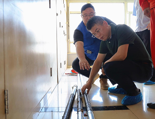萬(wàn)董察看了正處于立管施工階段的二樓住戶和已完成立管更換的十樓住戶家中情況,詢問(wèn)了材質(zhì)特性、耐久性能及施工規(guī)范等關(guān)鍵技術(shù)指標(biāo),并就施工方案的具體落實(shí)和居民反饋意見與現(xiàn)場(chǎng)人員進(jìn)行交流。