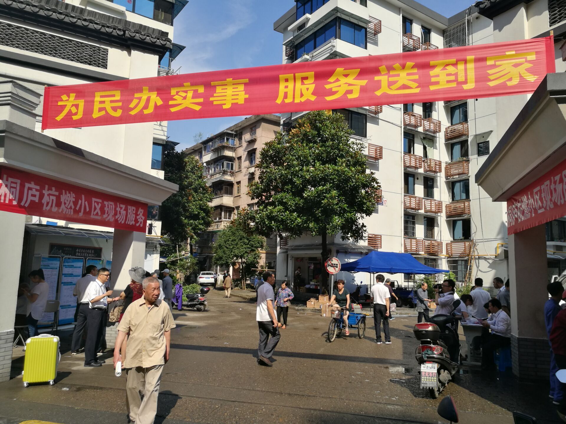 2017年,桐廬杭燃多次對該小區進行現場踏勘,根據現場實際情況合理,調整地下管位、調壓器位置,增加架空管工程量。6月4日,洋塘新村小區地下管順利通氣。6月5日,桐廬杭燃服務人員走進小區開展“最多跑一次,服務送到家”現場服務活動,現場辦理燃氣開通274戶,安裝、點火完成50戶,灶具銷售101臺。