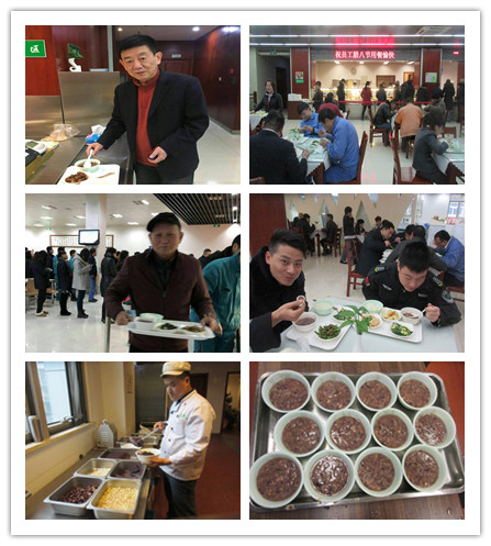 臘八遇瑞雪,暖胃又暖心。工程公司早早為全體員工準備了330余份暖暖的臘八粥,中午,班子成員在食堂親自為每一位員工送上這份溫暖。