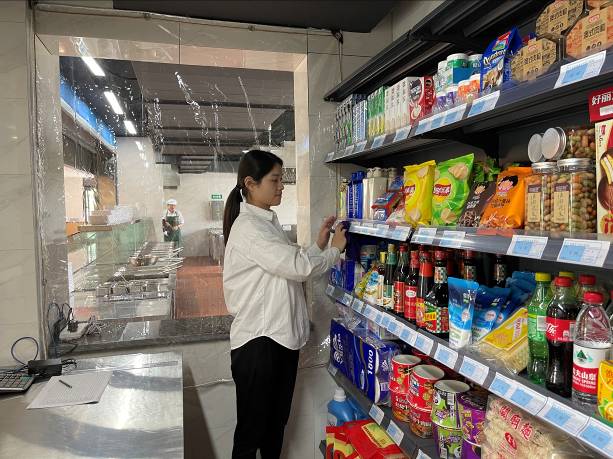 “民以食為天”,食堂小超市貨架上擺滿了米、面、糧、油等生活必需品,首批上架的74種商品擺放得整整齊齊。員工就餐后可以看一看、選一選,隨手買一些自己需要的物品,免去了外出購物的麻煩。“真得很方便,不出公司大門就可以買到自己喜愛的飲料、糕點,太給力了……”小超市一開張就陸續迎來了前來購買的員工,大家紛紛掏出飯卡“刷刷刷”,處處是開心的笑臉!