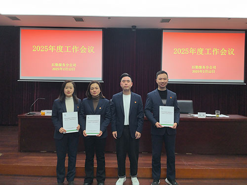 2025年2月12日下午,后勤服務分公司召開2025年度工作會議。分公司領導班子、各科室負責人、全體員工及外協單位負責人參加。集團黨委委員、副總經理周勤芳受邀出席并作講話。分公司黨支部副書記、副經理王曉娟主持會議。