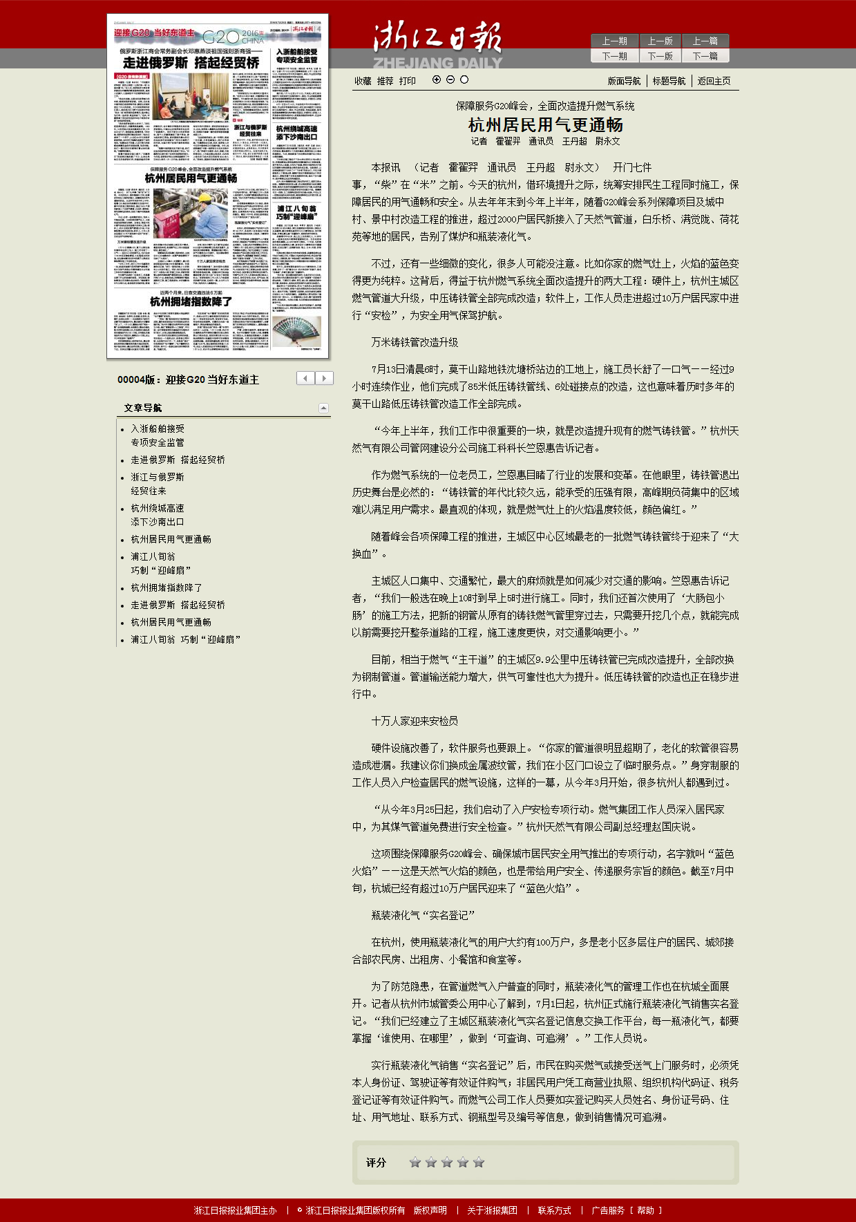 保障服務(wù)G20峰會(huì),全面改造提升燃?xì)庀到y(tǒng),杭州居民用氣更通暢
