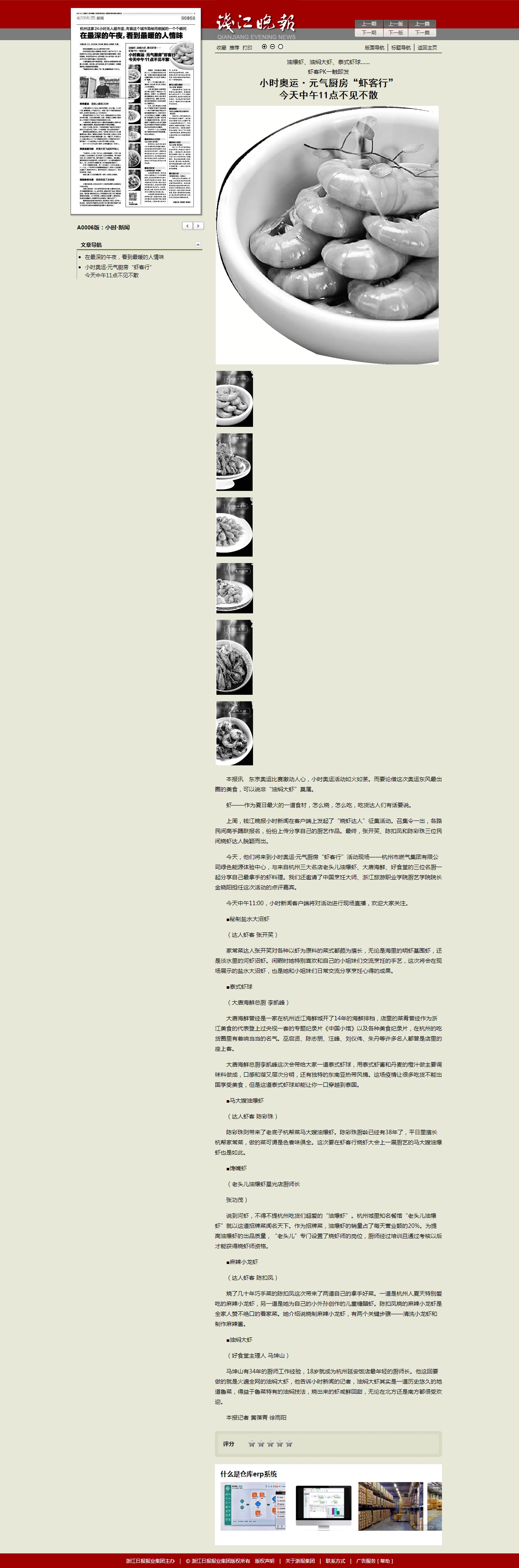 上周,錢江晚報小時新聞在客戶端上發起了“燒蝦達人”征集活動。召集令一出,各路民間高手踴躍報名,紛紛上傳分享自己的廚藝作品。最終,張開笑、陳扣鳳和陳彩珠三位民間燒蝦達人脫穎而出。