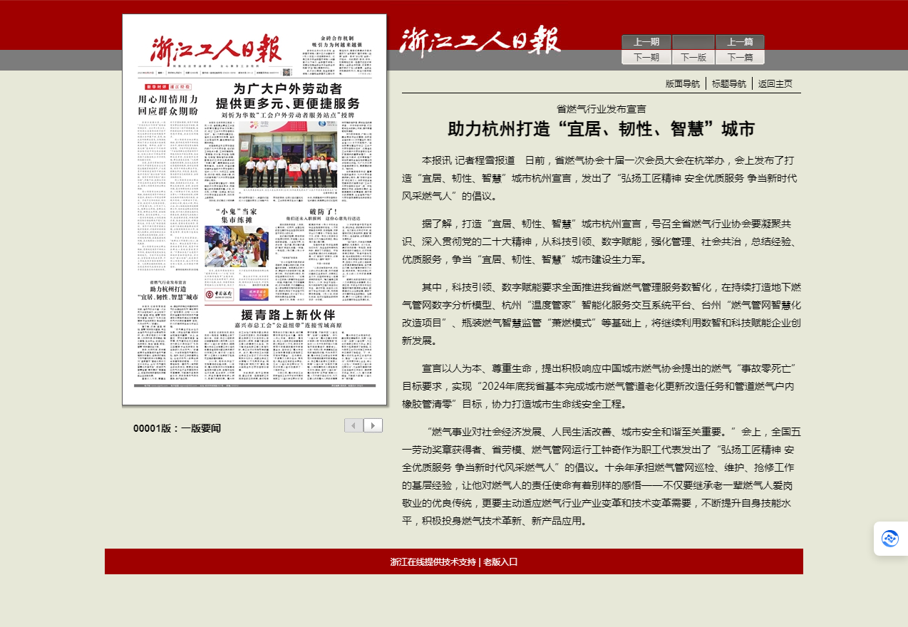日前,省燃氣協會十屆一次會員大會在杭舉辦,會上發布了打造“宜居、韌性、智慧”城市杭州宣言,發出了“弘揚工匠精神 安全優質服務 爭當新時代風采燃氣人”的倡議。