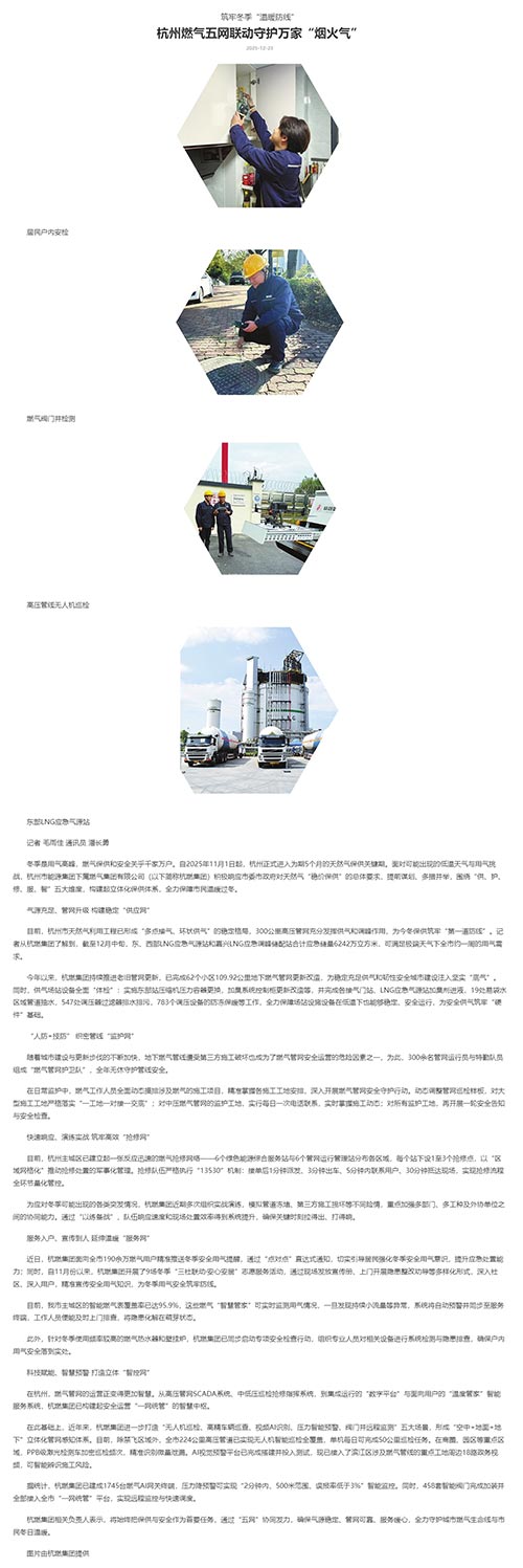 杭燃集團相關負責人表示,將始終把保供與安全作為首要任務,通過“五網”協同發力,確保氣源穩定、管網可靠、服務暖心,全力守護城市燃氣生命線與市民冬日溫暖。