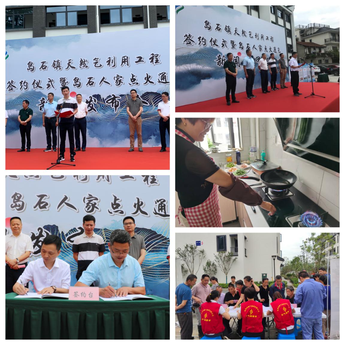 6月23日上午,島石鎮(zhèn)天然氣利用工程簽約儀式暨島石人家點(diǎn)火通氣新聞發(fā)布會(huì)順利召開。臨安杭燃和島石鎮(zhèn)政府簽訂了《島石鎮(zhèn)天然氣利用工程合作協(xié)議》,島石人家安置小區(qū)第一家管道燃?xì)饩用裼脩酎c(diǎn)火通氣。臨安區(qū)人大副主任童彩亮、杭州市燃?xì)饧瘓F(tuán)有限公司副總經(jīng)理徐小冬、臨安區(qū)災(zāi)后重建工作領(lǐng)導(dǎo)小組辦公室副主任胡尚新、臨安區(qū)人大農(nóng)業(yè)農(nóng)村工委主任謝兆時(shí)、島石鎮(zhèn)黨委書記葉浩然、島石鎮(zhèn)鎮(zhèn)長呂燕翔、臨安國瑞置業(yè)有限公司總經(jīng)理周明躍、臨安杭燃領(lǐng)導(dǎo)班子及部分員工、參建單位代表、島石鎮(zhèn)村民代表等70余人參加發(fā)布會(huì)。