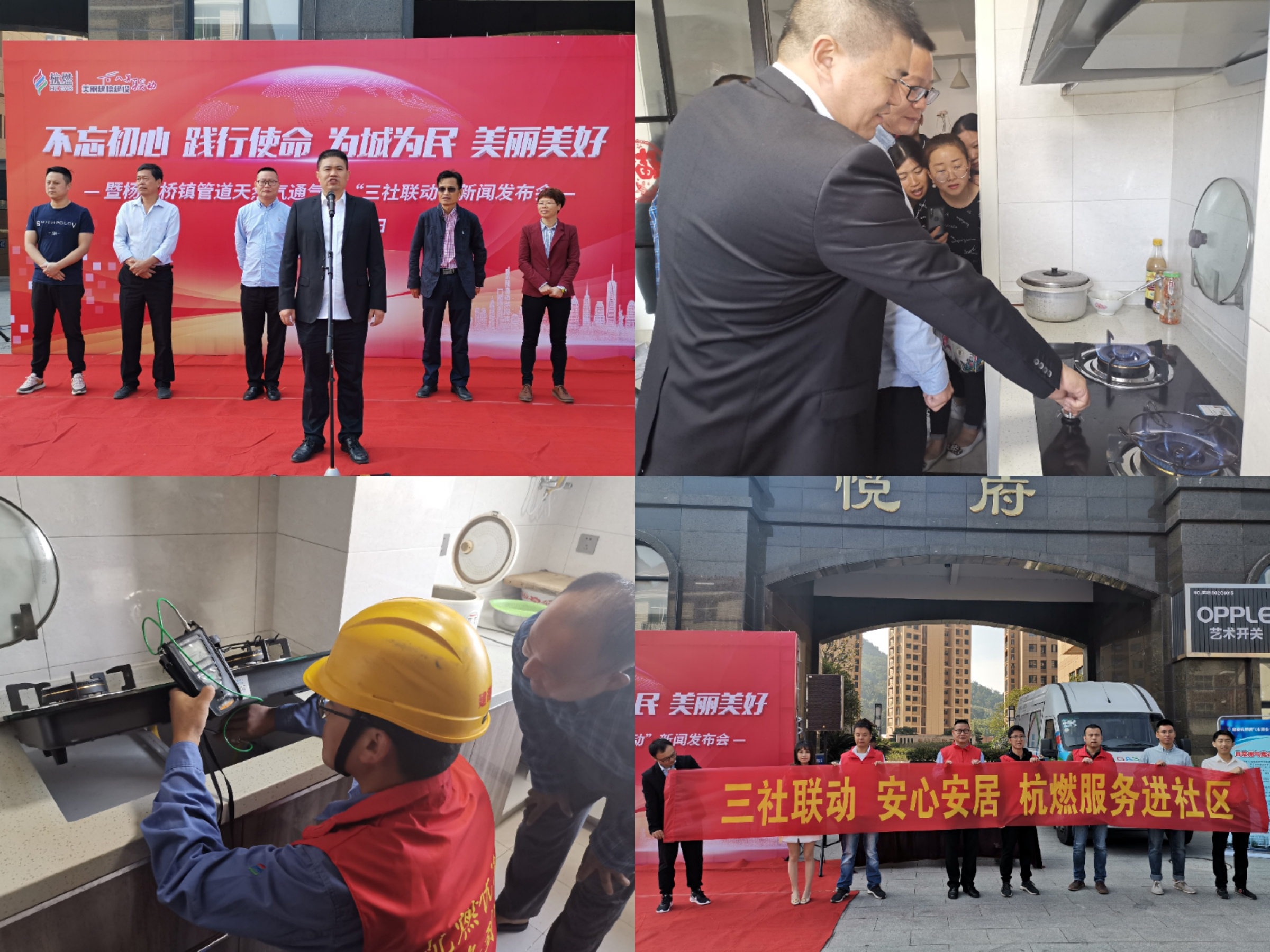 另外,為深入學習貫徹習近平新時代中國特色社會主義思想,全面落實省委《關于加強新時代城市基層黨建工作的意見》,切實鞏固黨的執政基礎,按照“共享資源、共同服務、共謀發展、共創和諧”的目標要求。發布會上楊村橋村周書記、華宇置發業蔣總、建德杭燃方總,三方代表以為城為民、公益同行為己任,完成“三社聯動”共建結對簽約儀式。通過三社聯動,減少燃氣安全隱患,推進燃氣“安全隱患零社區”,打造安全、安心、安居的綠色社區。