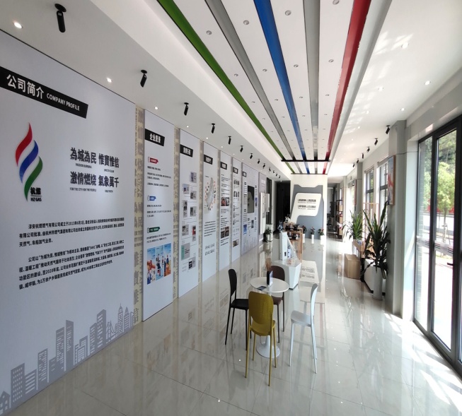為慶祝建黨百年,自2021年6月開始,淳安公司就開始設計打造 “淳安杭燃新客廳”,及拍攝企業(yè)宣傳片,至7月底完工,8月中旬正式亮相。公司宣傳片時長5分18秒,通過黨建紅色引領、燃氣綠色發(fā)展為主線貫穿,介紹了淳安公司的成立背景、歷程、價值理念、十四五規(guī)劃等;公司“企業(yè)文化墻”長17米、高2.7米,面積達46平方米,整面墻以大氣恢宏的青白色為主色調,通過“公司簡介、企業(yè)愿景、重要歷程、杭燃供氣、杭燃服務、氣蘊杭燃、智數(shù)杭燃、杭燃優(yōu)家微體驗”等8大模塊組成,全方位的展示了公司的企業(yè)文化形象和足跡。
