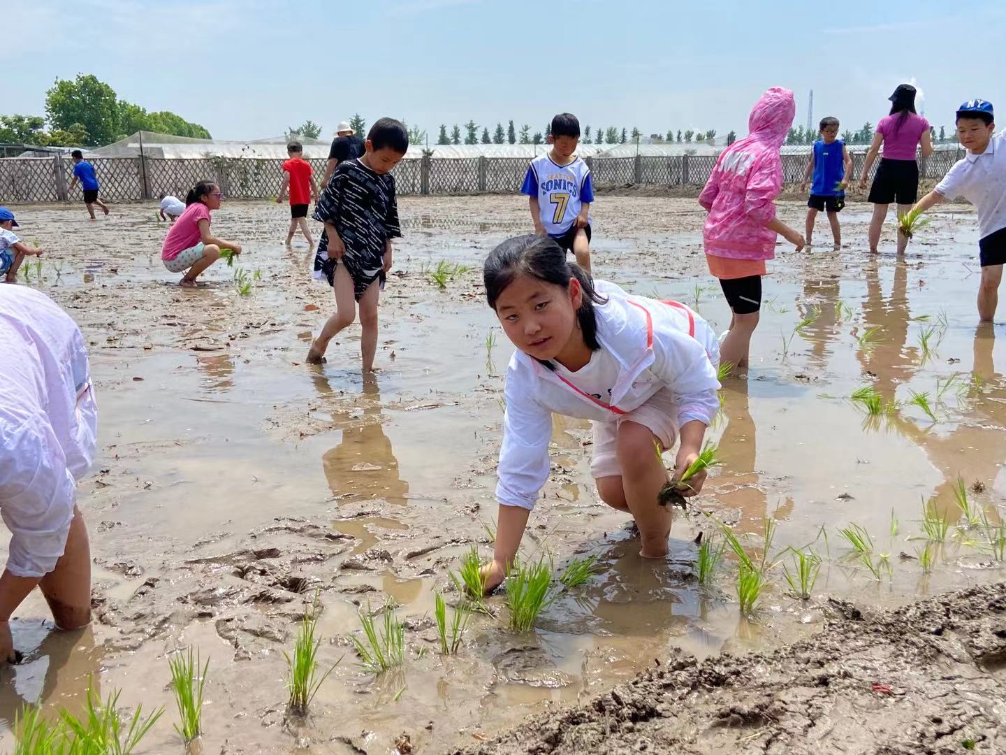 小記者們首先認(rèn)真觀看“節(jié)氣小知識(shí)”短視頻,學(xué)習(xí)什么是芒種、為什么叫芒種。隨后在工作人員的帶領(lǐng)下分組參觀沼氣循環(huán)利用站;在寵物樂(lè)園,小記者們興高采烈的喂食小兔和小山羊;最后小記者們?cè)谔锕〉牡咎镞叄?tīng)完農(nóng)技人員給大家講解插秧的技巧后,初入泥田的小記者們卷起褲腿光著腳丫深一腳、淺一腳的邁入泥濘的田間,體驗(yàn)拋秧、分秧、插秧的艱辛與樂(lè)趣,沒(méi)多久一個(gè)個(gè)都滿(mǎn)頭大汗。其中一位周爸爸由衷的表示:現(xiàn)代的孩子們生活在一個(gè)幸福的時(shí)代,擁有豐富多樣的食物,沒(méi)餓過(guò)肚子,不需要做農(nóng)活,可能從不知道食物是從哪里來(lái)的,“鋤禾日當(dāng)午,汗滴禾下土”也只是課本上的文字,特別感謝優(yōu)家農(nóng)場(chǎng)為小記者們體驗(yàn)面朝黃土背朝天,了解食物的來(lái)之不易。