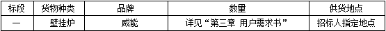 2.1 招標范圍:目前零售市場、房產項目需要的威能壁掛爐及安裝服務,具體詳見“第三章 用戶需求書”。
